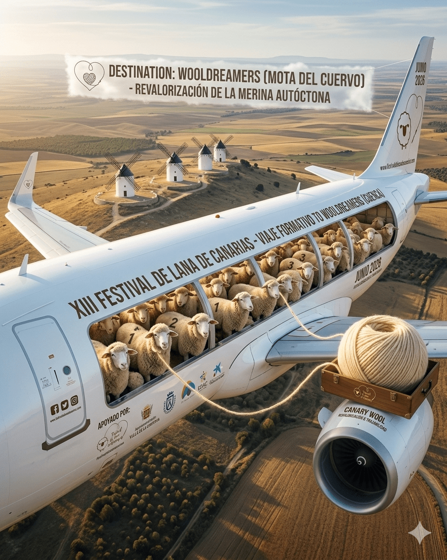Este año, nuestro destino principal es Wooldreamers, en Mota del Cuervo. Hemos elegido este proyecto por ser un modelo inspirador de revalorización de la lana de oveja merina autóctona. Su trabajo no solo garantiza la trazabilidad y calidad de la fibra, sino que también apoya a las comunidades de ganaderos, conectando la tradición textil con una producción sostenible y de futuro. Queremos traer esa pasión y ese modelo a nuestras islas.